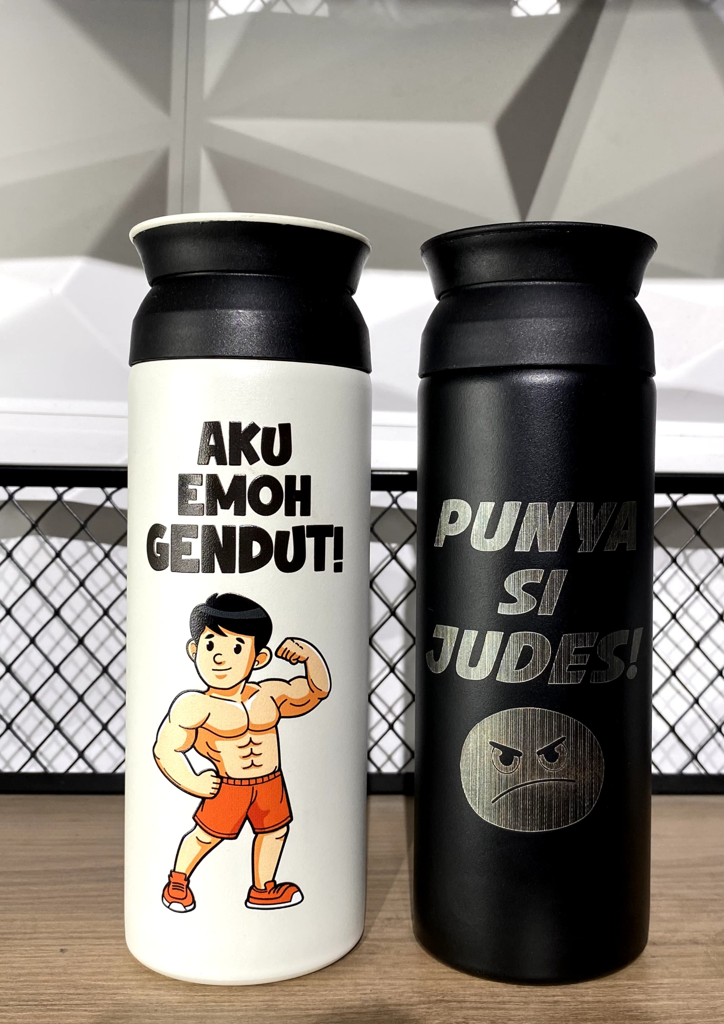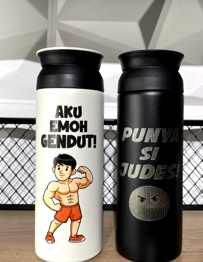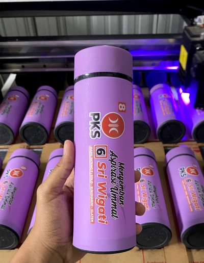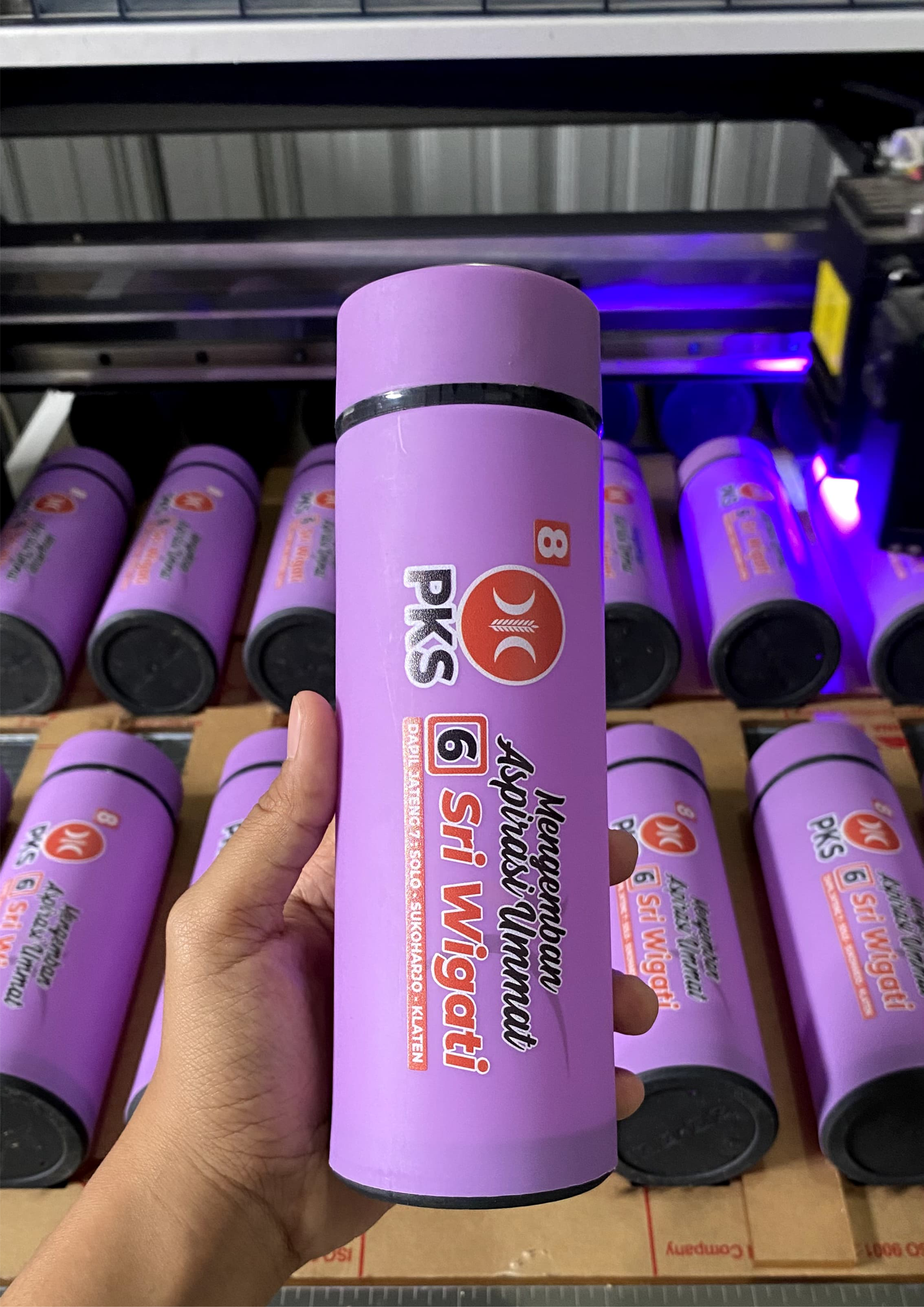 Produk termos di Pinrio Solo yang paling di minati selain banyak macam jenis tumbler, selain cetak grafir di Pabrik Merchandise Solo juga bisa cetak tumbler dengan teknik print UV melingkar, satu-satunya produsen merchandise yang bisa cetak tumbler print UV melingkar se soloraya.