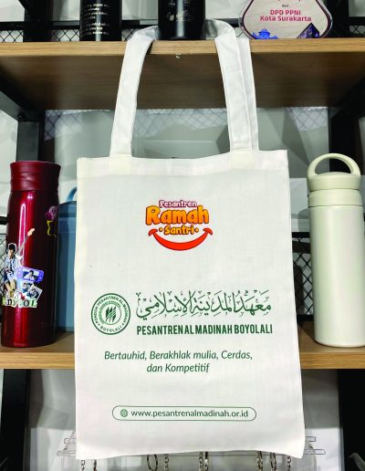 Cetak Totebag bisa di kreasikan dengan berbagai desain dan aksesoris. Totebag ini bersifat fashionable dan unisex. Dalam hal ini, banyak ide untuk menjadikan totebag cetak custom sebagai merchandise untuk berbagai kegiatan. Oleh karena itu, tidak jarang orang menganggap tas ini sebagai kado atau gift, misalnya dengan desain cetak foto akan memberikan nilai plus pada totebag ini apabila di berikan kepada orang terdekat. Keunggulan cetak totebag di PINRIO SOLO :